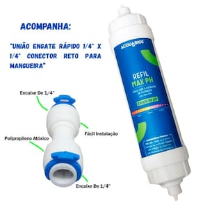 Refil alcalinizador para pré-filtração, responsável por elevar o pH final da água entre 8,5 e 9,5. Compatível com diversos modelos: "MULTIUSO". Possui encaixe com pino de 1/4" facilmente adaptável com diversos purificadores de água. Filtro MAX PH possui a eficácia Bacteriostática e Equilibra PH da água, sendo ideal para garantir água potável e livre de contaminantes. Possui 5 estágios de filtração.Tipo