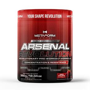 Pré Treino Arsenal Revolution 350g Metaform Nutrition Sabor: Red Fruits O Pré-treino Arsenal Revolution da Metaform Nutrition é uma fórmula desenvolvida para apoiar o desempenho físico durante os treinos. Cada porção de 7g contém ingredientes como Beta-Alanina, L-Arginina e Cafeína, que podem contribuir para aumentar a energia, o foco e a resistência.