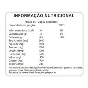 Benefícios: Intensidade nos treinos. Foco otimizado. Resistência aos treinos intensos. Pode atuar na sua força. Pode atuar no descanso pós-treino. Energia para atividades e exercícios. Pode atuar no transporte dos nutrientes para os músculos. Pump durante o treino. Com glicerol, valina, isoleucina e leucina fórmula exclusiva .