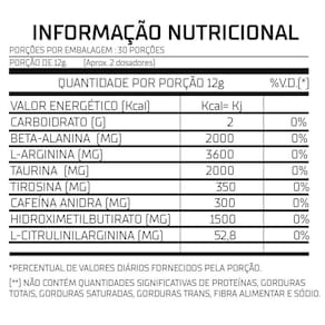 Beta Alanina 2.000mg : Ajuda a retardar a fadiga muscular, permitindo que você treine por mais tempo e com mais intensidade. Arginina 3.600mg : Com uma dose altíssima, a Arginina promove a vasodilatação, aumentando o fluxo sanguíneo para os músculos e melhorando a entrega de nutrientes essenciais durante o treino. Taurina 2.000mg : Essencial para a saúde cardiovascular e função muscular, a Taurina também pode aumentar a resistência e reduzir a fadiga durante o exercício. Tirosina 350mg : Ajuda a melhorar o foco, concentração e alerta mental, mantendo você motivado e engajado em seu treino. Cafeína Anidra 300mg : A forma purificada e altamente concentrada de cafeína aumenta a energia, o foco e o desempenho físico, mantendo você alerta e motivado durante todo o treino. HMB 1. Citrulina 52,8mg : Contribui para a produção de óxido nítrico, promovendo uma melhor vasodilatação e aumentando o fluxo sanguíneo para os músculos. O Dyna'Kout entrega o que há de melhor em um pré-treino, com doses altas para uma máxima eficácia, em comparação com os pré-treinos nacionais. Prepare-se para uma performance excepcional que supera todas as expectativas. Experimente o Dyna'Kout e eleve seu treino a um novo patamar.