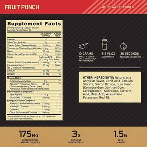 O Pré-treino Gold Standard - Optimum Nutrition combina cafeína de fontes naturais com monohidrato de creatina e beta-alanina para ajudá-lo a liberar energia, concentração, desempenho e resistência. Qualquer que seja a sua meta, atingir o auge do seu treino, esmagar sua próxima série ou obter a última repetição, obtenha energia com o pré-treino de uma das marcas mais confiáveis em nutrição esportiva.