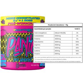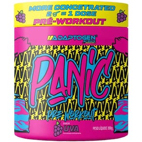 Panic Pré Treino chega com sua fórmula explosiva desenvolvida pela Adaptogen, possui dosagem altíssima de Beta-Alanina, Taurina e Cafeína. Esses elementos são estimulantes que garantem que você tenha a disposição e energia necessárias para realizar um treinamento físico intenso.