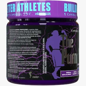 CANIBAL PUMP BLEND( L arginina, beta Alanina, Taurina< glicerol, Inositol, Cloridrato de niacina(vitamina b3), Ácido ascórbico(vitamina C), Piridoxina HCL ( vitamina B3), pimenta preta, Aroma idêntico ao natural de chiclete, corante vermelho amaranto. Antiumectante diócido de silício, Edulcorrante sucralose. NÂO CONTÉM GLÚTEN