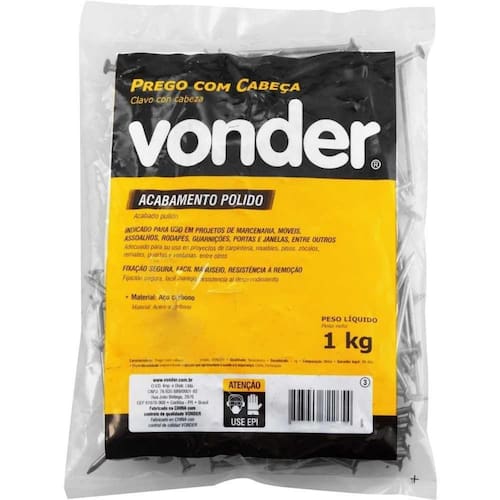 Prego com Cabeça Vonder 15 x 21 (2 x 13) Polido 1 Kg - Vonder Oficial