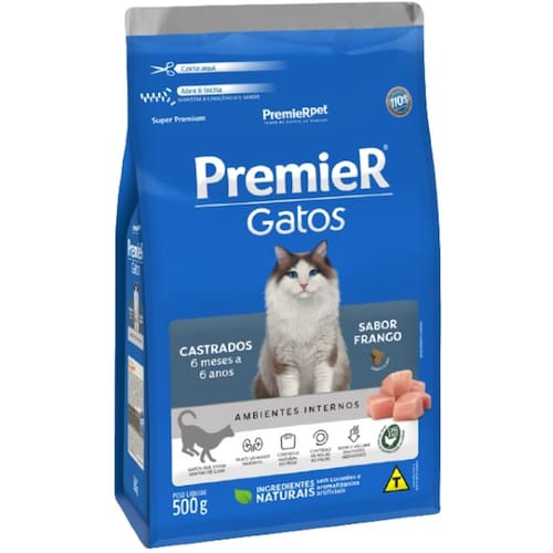 PremieR Gatos Castrados 6 meses a 6 anos 7,5kg. Trato Urinario SaudavelControle do pH urinario e mineraiscientificamente balanceados.. Controle natural do pesoCalorias e gorduras reduzidas eenriquecido com L.carnitina.. Controle das bolas de pelosRico em fibras que auxiliam nasua eliminacao.. Odor e volume das fezes reduzidosSelecao de ingredientes especiais que auxiliam na reducao do odor e volume das fezes.