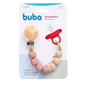 O prendedor de chupeta da Buba é perfeito para manter a chupeta limpa e presa à roupinha, sempre acessível ao pequeno.