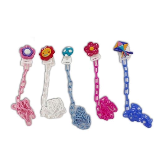 Prendedor de chupetas de corrente ellen & erica Prendedor de chupetas de corrente ellen & erica O prendedor de chupetas ellen & erica é seguro, prático e funcional.Ele pode ser preso facilmente na roupa do bebê. Com isso, a chupeta permanece limpa e pode ser facilmente alcançada.O produto também serve para prender outros objetos de uso do bebê, como mordedores.Além disso, estes prendedores são super coloridos e vem em diferentes formatos, deixando a criança mais bonita e estilosaDisponível em embalagens sortidas com 12 unidades.Como usarPrenda o clipe na roupa do bebê e a chupeta na ponta da argola.AdvertênciasNão se recomenda o uso do prendedor de chupetas no primeiro mês de vida.Lavar com água e sabão neutro.Guardar a embalagem e/ou rótulo para eventuais consultas.O prendedor de chupetas deve ser preso na roupa do bebê e nunca próximo ao pescoço.Não deve impedir ou limitar a movimentação da cabeça.Nunca aumente o comprimento da fita (corrente), pois há risco de estrangulamento.Não usar o acessório quando o bebê estiver deitado.O uso do prendedor de chupetas deve ser supervisionado por um adulto, assim como todo produto destinado ao bebê.Antes de cada uso verifique por rasgos ou perfurações. Se houver, descarte o produto imediatamente.o ministério da saúde adverte: a criança que mama no peito não necessita de mamadeira, bico ou chupeta. O uso de mamadeira, bico ou chupeta prejudica o aleitamento materno. Marca: Ellen E Erica