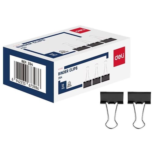 Prendedor De Papel Effortless 25mm Preto 12 unid - Deli