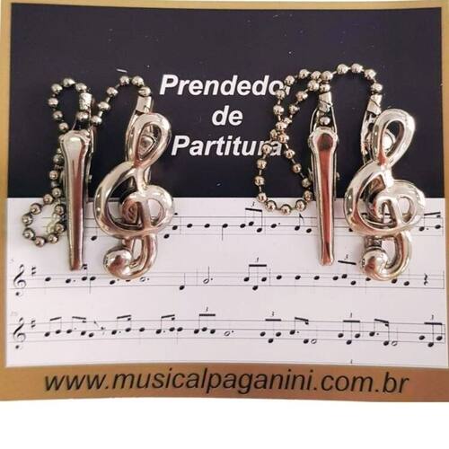 - Pode ser utilizada em qualquer tipo de partitura, livro, método, hinário; - Possui 02 clipets em cada prendedor; - Fabricado em metal resistente; - Design moderno e diferenciado; - Acabamento na cor Prata, conferindo elegância ao seu equipamento; - Sistema abre e fecha por pressão mola, proporcionando fácil uso e segurança; - Produto fabricado no Brasil, garantindo qualidade e suporte local.