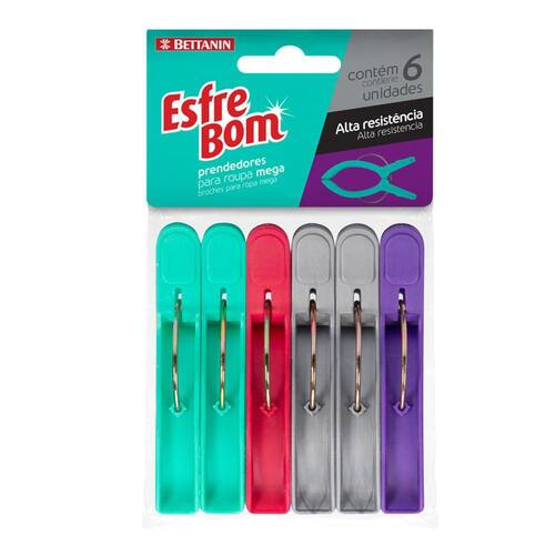 Prendedor De Roupas Esfrebom Mega 6 Peças Bettanin Com Cores modernas e Firmeza na medida certa, os Prendedores para Roupa Mega EsfreBom Bettanin vem com 6 Peças. Resistente e com design diferenciado, os Prendedores Esfrebom serão seus aliados na hora de pendurar as roupas.] Características: Marca: Bettanin Cor: Diversas 6 Peças