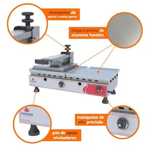 Muito importante:-- conferir produtos no ato do recebimento. Não aceitar produtos com embalagem violada amassado, rasgado, aberto, quebrado, etc , a recusa deve ser feita no ato.Prensa chapa conjugada profissional a gás alumínio lanche pra-700 g - progás p43535eleve o nível dos seus lanches com a prensa chapa conjugada a gás progás pra-700g, a solução definitiva para quem busca alta produção e qualidade profissional no preparo de alimentos grelhados. Ideal para lanchonetes, restaurantes, food trucks e outros estabelecimentos comerciais, esta chapa para hambúrguer e lanches transforma sua cozinha em um centro de eficiência e sabor. A chapa em alumínio fundido de alta condução térmica garante um cozimento uniforme e rápido, essencial para a produção de lanches de qualidade.A regulagem de abertura da prensa permite ajustar a pressão ideal para cada tipo de alimento, desde hambúrgueres suculentos até sanduíches crocantes. A saída de gordura integrada proporciona um preparo mais saudável, reduzindo o excesso de óleo e facilitando a limpeza da prensa chapa industrial. Construída com estrutura em aço inox escovado, a pra-700g oferece durabilidade e resistência para uso intenso. O puxador em polímero de alta resistência garante segurança e conforto no manuseio, enquanto o sistema que mantém a prensa elevada otimiza o fluxo de trabalho. Esta prensa chapa a gás de baixa pressão, compatível com botijão p13, é a escolha inteligente para quem busca economia e eficiência. Com consumo médio de 0,38kg/h, você garante alta produção com baixo custo. Não perca a oportunidade de elevar a qualidade dos seus lanches e impulsionar o seu negócio. Adquira agora a prensa chapa conjugada a gás progás pra-700g e transforme sua cozinha em um centro de eficiência e saborespecificações técnicas:- chapa em alumínio fundido de alta condução térmica;- sistema que mantém a prensa pão elevada quando a mesma estiver aberta;- puxador em polímero de alta resistência;- regulagem de abertura da prensa;- estrutura em aço inox escovado;- faz até 100 lanches por hora;- a gás baixa pressão sendo necessário 1 botijão p13;- pés niveladores;- saída de gordura;- consumo médio: 0,38kg/h; - medidas totais: 39,6cm a x 71,4cm l x 48,8cm p; - medidas da embalagem: 31cm a x 77cm l x 53cm p;- peso líquido: 17kg;- peso bruto: 19kg.- a prensa chapa é adequada para o preparo de quais tipos de alimentosA prensa chapa é ideal para o preparo de lanches, hambúrgueres, sanduíches, carnes, legumes e outros alimentos grelhados.- qual a diferença entre uma prensa chapa conjugada e uma chapa simplesA prensa chapa conjugada possui uma chapa com prensa integrada, o que permite prensar e grelhar os alimentos ao mesmo tempo, agilizando o preparo de lanches e outros alimentos. Já a chapa simples é utilizada apenas para grelhar os alimentos.Prensa chapa profissional, chapa para lanches, prensa chapa a gás, chapa conjugada, prensa chapa progás, chapa alumínio fundido, prensa chapa para restaurante, equipamento para lanchonete, chapa para hambúrguer, prensa chapa industrial, chapa para food truck, chapa para cozinha profissional, prensa chapa alta produção, prensa chapa inox, chapa para grelhados, prensa chapa gás baixa pressão, equipamento para preparo de lanches, prensa chapa com regulagem, chapa com saída de gordura, prensa chapa para uso comercial.
