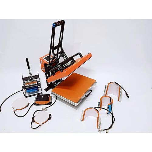 Prensa térmica combo 08 em 01 para sublimar: plana, canecas, squeezes, prato e boné.