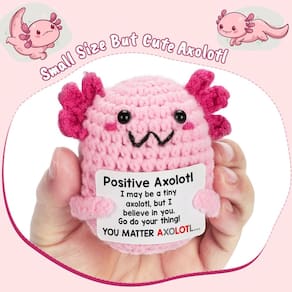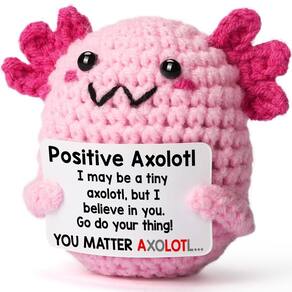 - - Apoio emocional positivo: este lindo axolote de crochê vem com um cartão de mensagem inspirador, trazendo energia positiva e incentivo para melhorar seu humor. Ele foi projetado para elevar e fornecer apoio à saúde emocional e mental, tornando-o perfeito para dias difíceis. - - Presentes para mulheres, meninas e adolescentes: uma ideia de presente moderna e atenciosa para mulheres, meninas, adolescentes ou até mesmo colegas de trabalho. Ideal para aniversários, Natal ou como presente divertido e solidário para amigos que precisam de um pouco de animação.- - Decoração inspiradora: além de ser um animal fofo de pelúcia, este axolote de crochê também é um item de decoração inspirador. Perfeito para decoração de quarto, mesa ou escritório, serve como um lembrete diário para se manter positivo e seguir em frente. - Perfeito para qualquer ocasião: se você está procurando um presente de aniversário, uma meia de Natal ou um presente para trocar elefantes brancos, este axolote de crochê feito à mão é um item único e motivacional que traz alegria, positividade e incentivo ao destinatário. -