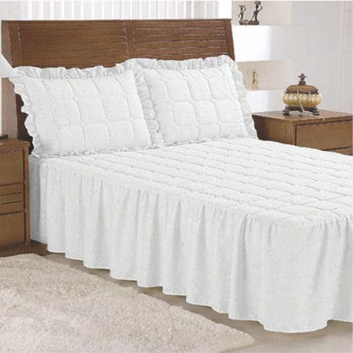 Colcha Lese Casal Padrão com Babado 03 Peças
