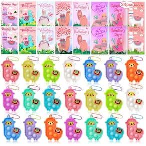 - ???Presentes de Dia dos Namorados para crianças, 24 unidades?Nossos brinquedos Llama Pop Fidget são projetados com cores fofas e vibrantes, o que os torna perfeitos para presentes de Dia dos Namorados para crianças em sala de aula. Este brinquedo Valentines Pop Fidget é feito de material de silicone de alta qualidade que é seguro para crianças. O material é macio e confortável. Fácil de limpar, durável pode ser várias vezes.