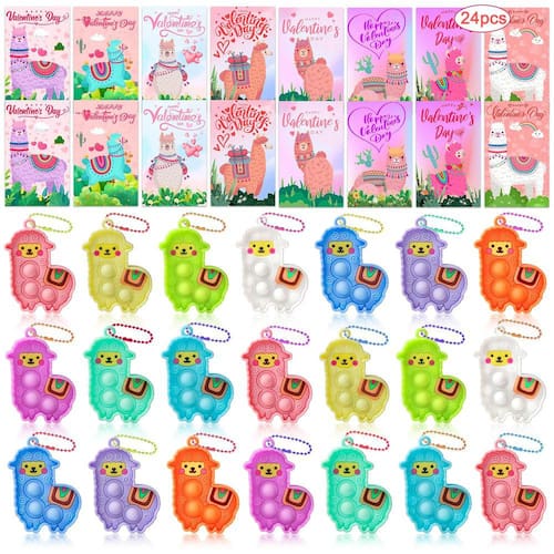 24 peças de presentes de Dia dos Namorados para crianças, cartões de Dia dos Namorados para crianças em sala de aula com brinquedos Lhama Pop Fidget, presentes de troca de Dia dos Namorados para crianças em sala de aula, lembrancinhas de Dia dos Namorados, prêmios em sala de aula, presentes de Dia dos Namorados para sala de aula, presentes de Dia dos Namorados, presentes de Dia dos Namorados em massa para crianças