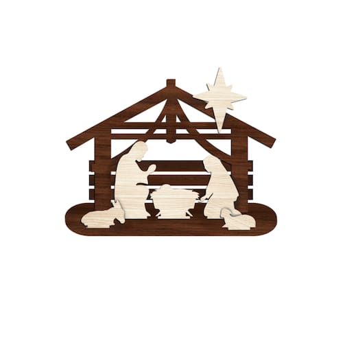 Presépio 03 Com Base 25cmx20cm - Cria Arte Laser madeira escuro -