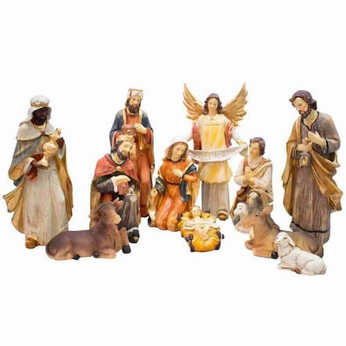 Presépio 11 Peças 21cm - Enfeite Resina Presépio 11 Peças 21cm - Enfeite Resina Enfeite decorativo em forma de imagem de presépio com 11 peças, cores reais sendo que a peça mais alta possui 21 cm. Detalhes do Presépio 11 Peças: 1 Peça Rei Mago; 1 peça José; 1 Peça o Jumento; 1 Peça outro rei Mago negro; 1 Peça mais um Rei Mago; 1 Peça Maria; 1 Peça Anjo Gabriel; 1 Peça Jesus; 1 Peça o menino e o Cordeiro; 1 Peça outro Cordeiro; 1 Peça o Boi; Peso 3,000 gramas; Altura 30cm; Largura 30cm; Comprimento 30cm.