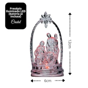 Presépio Decorativo de Acrílico Cristal Iluminado com LED Colorido 12cm x 6cm 1 Unidade