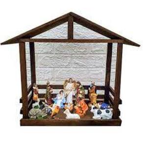 Trata-se de um Conjunto de 15 peças lindamente pintadas na cena da natividade mais tradicional do mundo inteiro. Apresenta o nascimento do bebê Jesus em uma manjedoura, dentro de um estábulo com os 3 reis magos, pastores, vaca, ovelhas, burro e camelo.