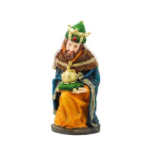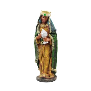 DetalhesEnfeite decorativo na imagem do Presépio realista com 11 peças, sendo o mago a peça mais alta com 32,5 cm de altura. As peças que formam o Presépio são: Menino Jesus não removível da Manjedoura, Maria, José, Pastor, 3 reais magos Melquior, Baltazar e Gaspar, Anjo, Burro, Boi e Ovelha. Tamanhos proporcionais a peça mais alta. Material: resina Marca: Vivere