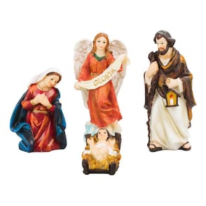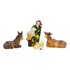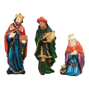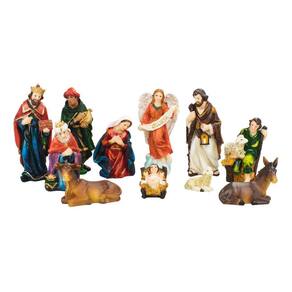 Enfeite decorativo na imagem do Presépio realista com 11 peças, sendo o rei mago de manta vermelha a peça mais alta com 14 cm de altura. As peças que formam o Presépio são: Menino Jesus na Manjedoura, Maria, José, Pastor, 3 reis magos Melquior, Baltazar e Gaspar, Anjo, Burro, Boi e Ovelha. Tamanhos proporcionais a peça mais alta. Material: resina