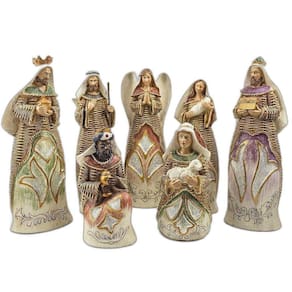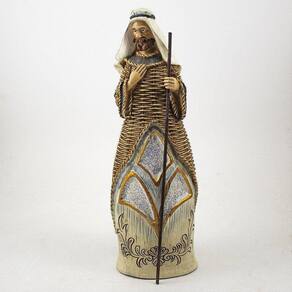 Dimensões: Maria: altura: 25 cm - Largura: 9 cm - Profundidade: 6 cm José: altura: 27 cm - Largura: 9 cm - Profundidade: 6 cm Anjo: altura: 27 cm - Largura: 9 cm - Profundidade: 7 cm Baltazar: altura: 17,5 cm - Largura: 8 cm - Profundidade: 9 cm Gaspar: altura: 27 cm - Largura: 10 cm - Profundidade: 7 cm Melchior: altura: 27 cm - Largura: 9 cm - Profundidade: 7 cm Pastor: altura: 17 cm - Largura: 9 cm - Profundidade: 9 cm
