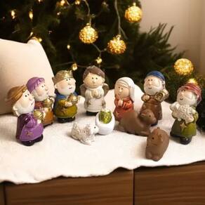 Design Encantador: Peças com um estilo "fofinho" e delicado, que cativam adultos e crianças. Perfeito para introduzir a história do Natal de forma leve.