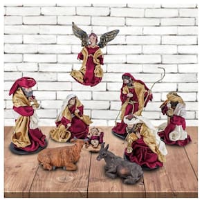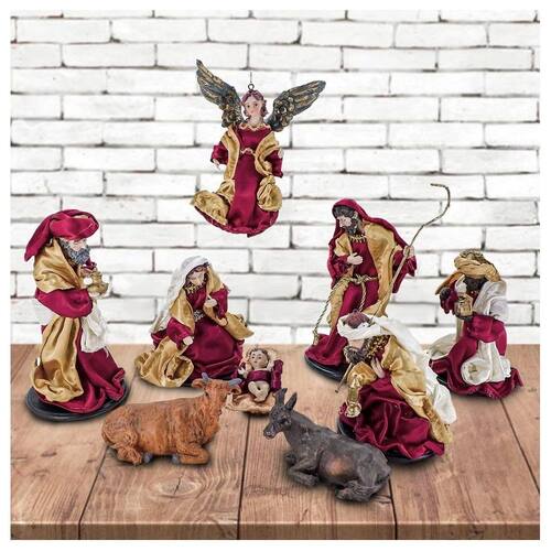Presépio Natalino Decorativo 9 Peças Resina Plus Seda 16cm -