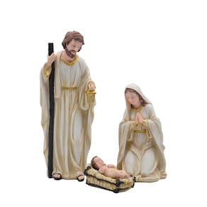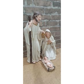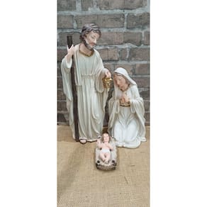 Material: Resina durável, com acabamento em tom marfim elegante. Dimensões: Altura: 45 cm Comprimento: 20 cm Largura: 20 cm. Peso: Aproximadamente 2,050 kg conjunto . Estilo: Clássico, perfeito para uma decoração tradicional e sofisticada de Natal. Itens Inclusos: 3 figuras Maria, José e Menino Jesus .