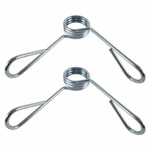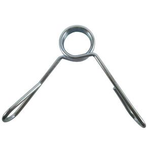 Presilha/grampo profissional para barra de musculação. Alta qualidade, feita em aço Belgo Mineiro e banho de Zinco Branco. Reforçada, possui três voltas, maior durabilidade.