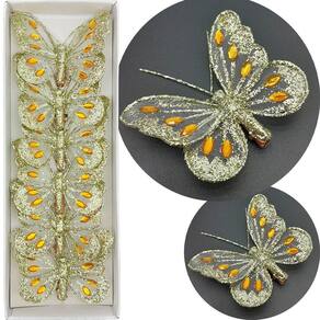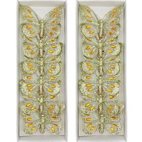 Presilha Prendedor Enfeite Borboleta Natal Dourado 8cm 12pçs Presilha Prendedor Enfeite Borboleta Natal Dourado 8cm 12Pçs - Prendedores Enfeite Borboletas de Natal 8cm! Deixe sua decoração natalina ainda mais charmosa com essas lindas presilhas em formato de borboleta. Perfeitas para usar na árvore de Natal, guirlandas, arranjos, mesas ou embrulhos de presente Descrição: Cor: Gliter Dourado Com Tom Esverdeado Tamanho: 8x8cm Práticas, fáceis de prender e reutilizáveis Perfeitas para árvores, guirlandas, mesas e embrulhos de presente Embalagem: 2 Kits Com 6 Presilhas Formato Borboleta Dourado de 8x8cm