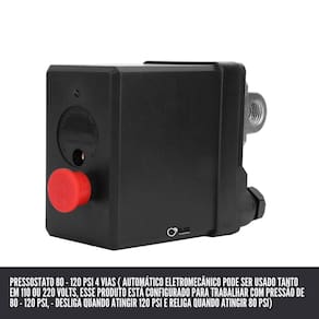 Eleve a eficiência e a confiabilidade do seu compressor com nosso Pressostato 4 Vias Multimarcas, ideal para uma ampla gama de modelos. Este componente essencial opera dentro de uma faixa de 80 a 120 PSI, garantindo um controle preciso e seguro da pressão do ar. Seja para aplicações industriais, automotivas ou de bricolagem, o nosso pressostato é a escolha perfeita para manter seu compressor funcionando de maneira ótima. Com facilidade de instalação e compatibilidade multimarca, ele é a solução definitiva para evitar paradas inesperadas e garantir a máxima produtividade. Não comprometa o desempenho do seu compressor - escolha nosso Pressostato 4 Vias Multimarcas hoje e beneficie-se de um sistema confiável e eficiente Marca: Não Informado