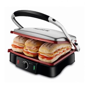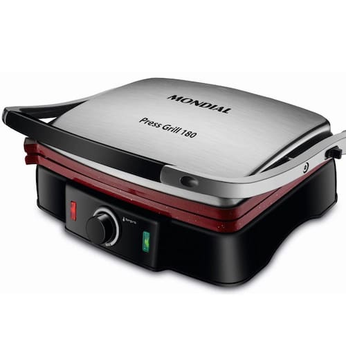 Características: Revestimento cerâmico Red Ceramic: os alimentos deslizam com facilidade sem grudar. Abertura 180°: permite grelhar muito mais alimentos de uma só vez. 1800 W de potência: mais agilidade no preparo dos alimentos. Chapas ajustáveis: mais facilidade no preparo de alimentos com espessuras variadas. Seletor de temperatura: ajusta a temperatura ideal para cada alimento.