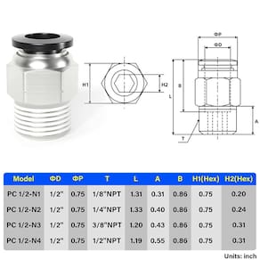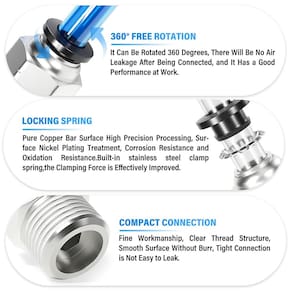 ? Especificações do produto: Tamanho: tubo de 1,27 cm diâmetro externo x rosca NPT de 9,5 mm (3/8") Material: cobre, plástico Forma: forma reta Faixa de pressão: 0 ~ 145 psi. Faixa de temperatura operacional: 32~60 °C Médio: água, ar, óleo etc. ? Incluído na embalagem: Tubo de 1,27 cm (1/2") OD x rosca NPT 0,95 cm (3/8") acessórios de tubo em forma reta trava (10 peças) ? Características do produto: 1. Resistência à corrosão, alta densidade, não é fácil de estourar. 2. O produto é resistente e durável e tem uma longa vida útil. 3. Montagem fácil, fácil e simples. 4. Pode ser utilizado para a conexão de tubos e o uso de diferentes componentes pneumáticos, e tem uma ampla variedade de usos. ? Atenção! 1. Não use para acessórios para tubos de água potável. 2. Evite contato com fontes de incêndio. 3. A pressão operacional não deve exceder 145psi. 4. Não use acessórios sob carga externa extra (dobra, torção ou puxão), caso contrário, isso causará danos ou vazamentos. 5. Evite misturar com materiais incompatíveis (oxidantes fortes, ácidos, bases, etc. ). - ?Nome do produto?Conexões de conexão de encaixe reto - ?Material?Cobre, plástico - ?Tamanho?Tubo de 1,27 cm OD x rosca NPT de 0,95 cm, aviso - O tamanho da rosca NPT é um tamanho nominal de tubo e não representa o diâmetro real - ?Pressão máxima?0~145psi?Temperatura de trabalho?32~60°C - ?Tubo aplicável?PU / PA / PE / PVC