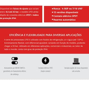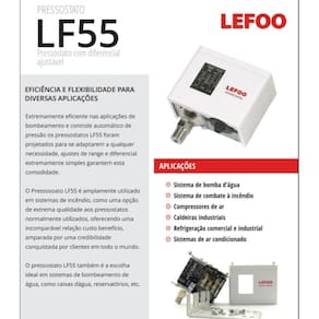O pressostato lf55 também é a escolha ideal em sistemas de bombeamento de água, como caixas dágua, reservatórios, etc.
