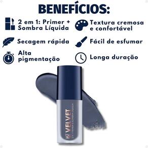 primer e sombra líquida com acabamento aveludado, destaque o olhar com cores incríveis pigmentadas e secagem rápida. Possui textura cremosa, confortável, fácil de esfumar e de longa duração.