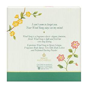 Song Perfume de Prince Matchabelli, Um perfume amadeirado único, Song foi lançado em 1953 e tem encantado os consumidores com sua combinação brilhante de flores e especiarias desde então. As notas superiores incluem coentro, estragão, folha de laranja e neroli, com toques suaves de tangerina, ta e limão. O coração se abre com um rubor de cravo e cravo, espalhando-se suavemente para revelar toques de rosa, ylang ylang, raiz de orris, jasmim e jacarandá. A base desliza suavemente com os aromas pungentes de sândalo e cedro, juntamente com os mais fracos indícios de vetiver, almíscar, benzoína e âmbar. Esta fragrância refrescante é adorável para um dia na primavera ou no verão.