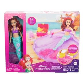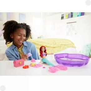 Aproveite um dia perfeito na piscina com as aventuras da Ariel na piscina! Inspirado no filme da Disney A Pequena Sereia, vem com uma grande piscina em forma de concha para diversão na água. O conjunto inclui areia moldável e 3 formas de areia, algumas com as figuras dos personagens Linguado e Sebastião, além de cinco outros acessórios, como uma toalha de praia e um baú de tesouro. Histórias sem fim que as crianças podem contar!