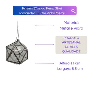 Prisma D'água Feng Shui Icosaedro 11Cm Vidro Metal Facetado