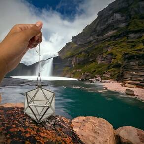 O Prisma D'água Feng Shui da Bialluz, eleva a sua energia em formato de icosaedro.Com 11cm de altura, este prisma facetado de vidro e metal é uma peça de beleza e harmonia incomparáveis.Deixe a luz e a água fluírem através deste objeto sagrado, trazendo equilíbrio e renovação para seu ambiente.