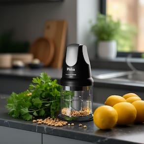 Processador compacto 3 em 1 com 4 lâminas Maxx Chop em inox. Jarra de 600ml. Haste em plástico. Com fio., Processador compacto 3 em 1 com 4 lâminas Maxx Chop em inox. Jarra de 600ml. Haste em plástico. Com fio.Acessórios