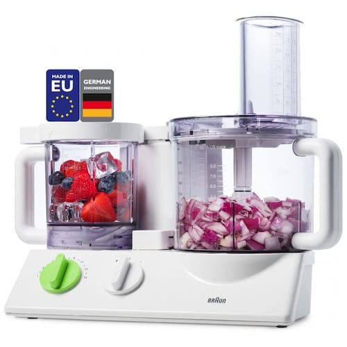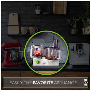 TECNOLOGIA DE PROCESSAMENTO DE ALIMENTOS DE PONTA O processador de alimentos FX3030 é a atualização mais recente da Braun em relação ao seu antecessor. Agora, ele vem em um design de tigela dupla A segunda tigela tem uma capacidade de 0,75L que pode fazer todos os trabalhos de corte que a tigela maior de 12 xícaras pode fazer. A máquina está equipada com travas de segurança para evitar operação simultânea. Você só pode usar uma tigela de cada vez. MAIS LÂMINAS COM SISTEMA FRENCH FRY ADICIONADO Juntamente com as sete 7 lâminas autênticos incluídas no modelo FP3020 inserção para ralar, inserção para ralar grosso, inserção para ralar fino, inserção para fatiar fino, acessório para bater , amassar, lâmina S e acessório para picar , você também receberá o Blade 21 para French Fry System MOTOR POTENTE, OPERAÇÃO ULTRA SILENCIOSA Este processador de alimentos multifuncional é equipado com saída de energia de 600W, 120V que fornece processamento de alimentos mais rápido e eficiente. Assim, ajuda a reduzir para metade os custos com eletricidade e o tempo de preparação das refeições A melhor parte é que gera menos ruído em comparação com outras máquinas de processamento de alimentos. SISTEMA DE CONTROLE DUPLO COM VELOCIDADE VARIÁVEL A função de velocidade pré definida garante resultados imediatos e muito uniformes sem aumentar em todas as velocidades. O processamento de alimentos começa diretamente em qualquer uma das 11 velocidades que você escolher para ainda mais controle sobre o desempenho. A velocidade ajustável faz tudo, desde o corte e corte mais difíceis até o chantilly e a mistura de ingredientes Marca: Não Informado
