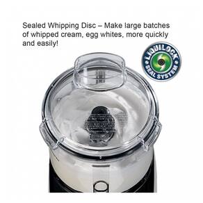 Processador de alimentos de tigela inquebrável de visão clara de 2 litros com sistema de vedação LiquiLock Motor de 3, 4 cavalos de potência de alto desempenho Design de tampa de tigela de lote plano com economia de espaço O disco e a lâmina incluem 1 lâmina em S serrilhada selada e travada, 1 disco de chicoteamento selado e travado Possui alimentação de 120 VCA, 60 Hertz e 5 A cULus, saneamento ETL