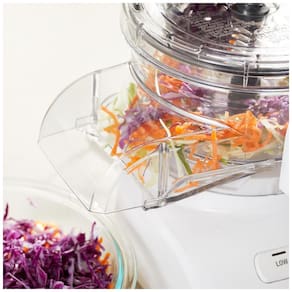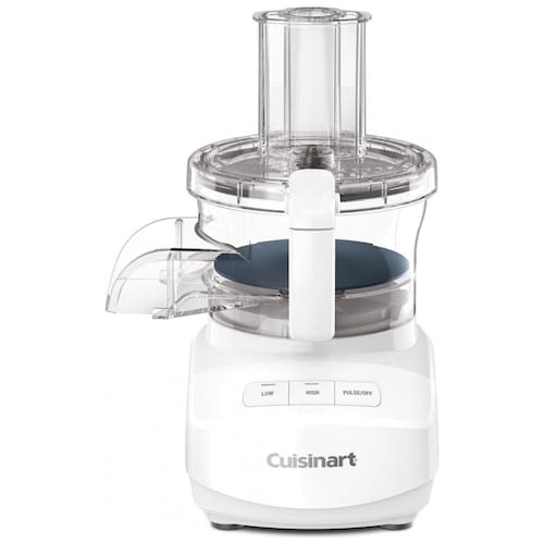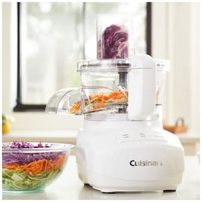 Processador de alimentos Cuisinart com tigela de 9 xícaras, lâmina universal, discos reversíveis para fatiar e ralar, alimentação contínua e controle de velocidade ajustável.Acessórios