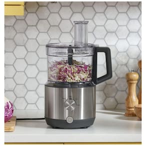 Processador de alimentos de 550 W Prepare até as frutas, vegetais e carnes mais resistentes com um poderoso processador de alimentos de 550 W. Frasco para 2,8 litros com alça Com o processador de alimentos para 2,8L equipado com alça ergonômica para um manuseio , terá bastante espaço para circular. Controles simples pique e misture seus alimentos favoritos com um processador de alimentos de 3 velocidades alta, baixa e pulsação, que são simples e fáceis de usar. 3 Discos e lâminas de aço inoxidável Obtenha mais com discos de ralar e fatiar finos, discos de ralar e fatiar médios e a lâmina principal. Tubo de alimentação grande elimine a necessidade de pré cortar ingredientes graças a um processador de alimentos com tubo de alimentação grande que acomoda ingredientes inteiros ou grandes com facilidade