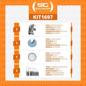 Processador de Alimentos Corte Fatias 14mm e Cubos 14mm PA7 PRO Bivolt Skymsen e Jogo de Facas 9 Peças