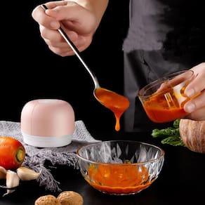 Processador de Alimentos Eletrico de Alho Mini Se você procura facilitar sua vida na cozinha e ganha agilidade no preparo de diversos alimentos esse Triturador é ideal para você facilitando e muito na hora de cozinhar, triturar alho, pimenta, tomate, até pequenas porções de carne. Ajuda e muito no preparo de papinhas para crianças, como papinha de abóbora, banana, e muitos outros alimentos.Sem sombra de dúvidas um grande aliado seja você dona de casa, chef de cozinha, Hobista. Super portátil: Um processador de alimentos de 100 ml é uma boa escolha para pequenas cozinhas, viagens e camping. 23W motor poderoso, cortando os alimentos rapidamente Fácil de limpar: A lâmina pode ser removida de uma maneira super simples. Você pode remover a tampa e o copo e ver tudo claro e fácil. IPX8, fácil de limpar. Seguro de usar: feito de ABS, PC, e aço inoxidável.Não se preocupe com os problemas de segurança. Adequado para mães, chefs profissionais, cozinheiros. Especificações:Capacidade: 100mlPotência nominal: 23 WTensão nominal: 5VCorrente nominal: 1AMaterial: ABS, PC, aço inoxidávelCor: Rosa Laminas: 2 Laminas trituradoras Lista do pacote:1moedor de alho1cabo de carregamento