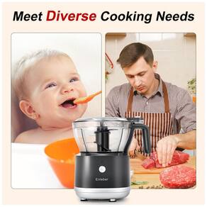 O processador de alimentos Enleber ZLJ002W é um mini processador elétrico compacto com tigela de aproximadamente 1 litro (4,5 xícaras), indicado para picar, fatiar, triturar, moer e fazer purês em pequenas porções. O motor em cobre de 200W processa até cerca de 900 g de ingredientes em poucos segundos, incluindo carnes, legumes, nozes e preparos para papinhas e alimentos de pets.