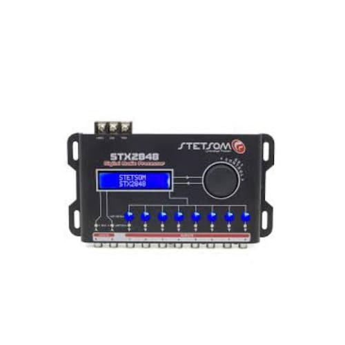 PROCESSADOR STX 2848 STETSOM O STX2848 é um processador de áudio digital que oferece uma enorme variedade de ajustes e configurações de alta precisão para melhorar o desemprenho de seu sistema de áudio. Possui dois DPS Processador de Sinais Digitais que realizam em tempo real equalizações, filtros de crossover, alinhamento, controle de ganho, inversão de fase, limiter, roteamento digital de entradas e saídas, entre outros tratamentos. Recursos: O STX2848 possui 2 entradas e 8 saídas independentes, e as seguintes funções: Equalizador gráfico de entrada 15 bandas e predefinições de equalização ; Equalizador paramétrico de entrada ,Equalizador paramétrico por saída Roteamento entre entradas e saídas; Crossover de alta precisão com filtros Butterworth e LinkwitzRiley e atenuações até 48dB/8ª; Alinhamento/atraso de alta precisão; Inversão de fase; Limiter com ajuste de Threshould, Attack e Release; Ganho independente e mute por saída e volume master; Memória de trabalho com salvamento automático das configurações; Permite salvar e carregar os ajustes feitos pelo usuário; Senha de segurança para bloquear modificações dos parâmetros; Gerador de frequência, varredura de frequência e gerador de ruído rosa; Proteção de tela com texto rotativo. Ean: 7897748704504